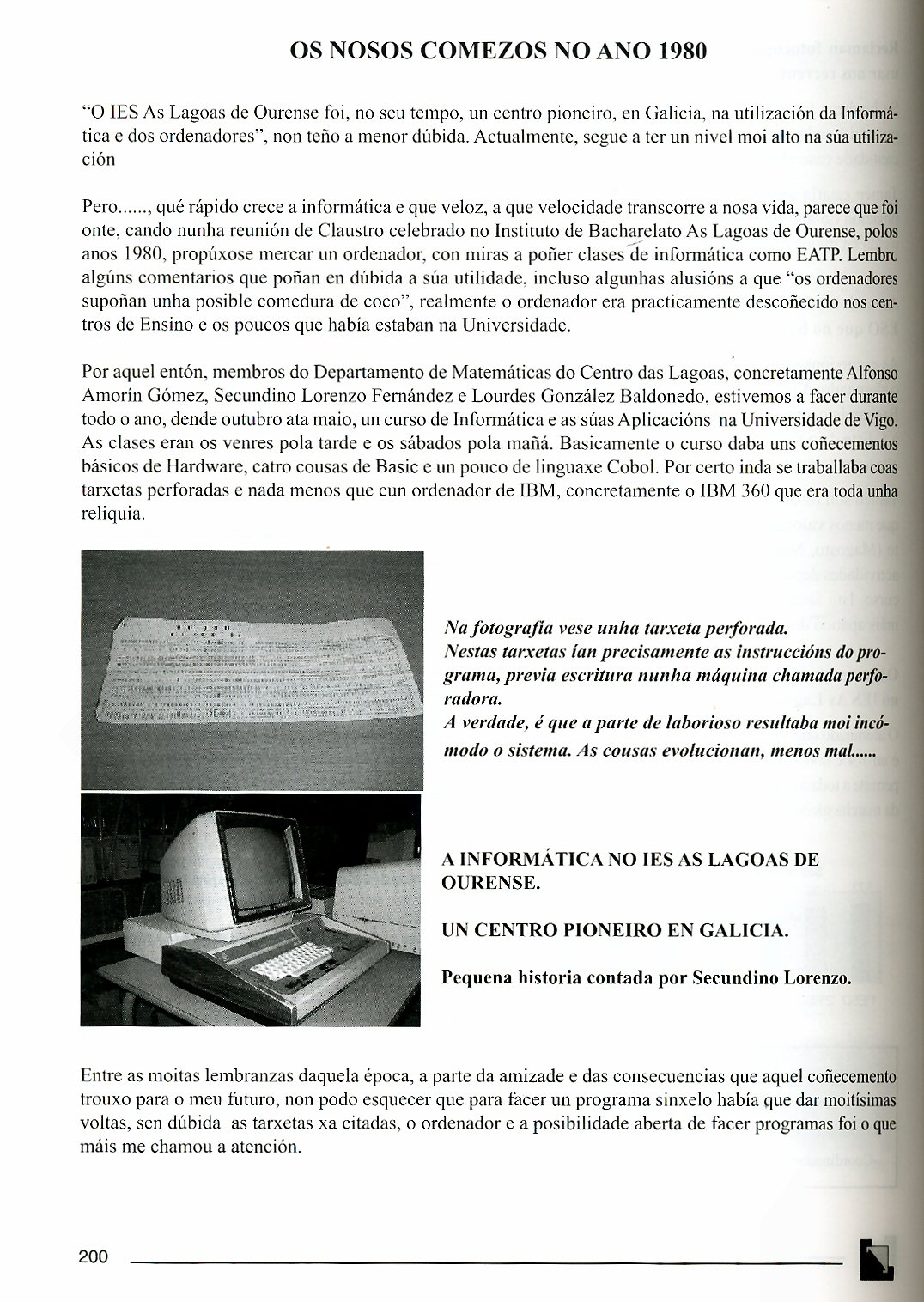 este artigo sobre os nosos comenzos coa informática nun IES de