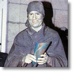 En la fotografía de J. Docampo aparece Casiano con disfraz de "castañera" alusivo a la inauguración reciente de esa figura en el Parque de San Lázaro.