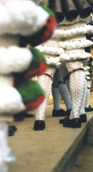 peliqueiros hacen pasillo a la salida de la misa dominical de Laza.