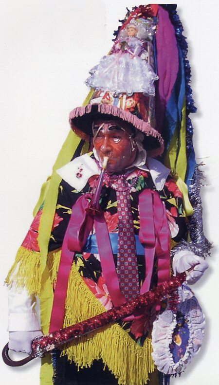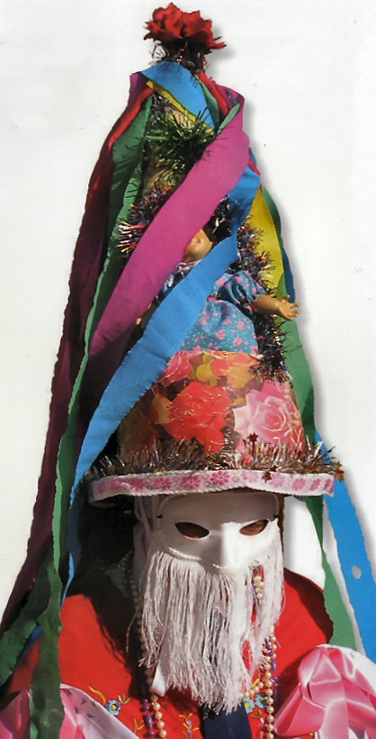 Na sensacional fotografía da esquerda, penso que é de Carlos G. Herbella vese un pucho con boneca do que penduran cintas de varios cores, típica máscara de Buxán.