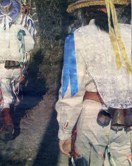 sábana, llevaban caretas hechas en casa de cartón, con campanillas alrededor.