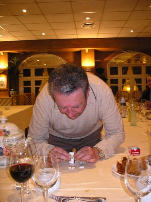Se trataba se sacar el billete sin que caiga la moneda y sin tocar al vaso... Nos ha sorprendido Tito...