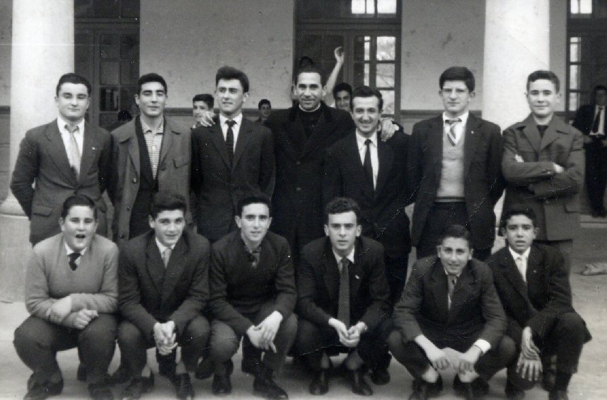 Un buen grupo de alumnos con el director. Por detrás de las