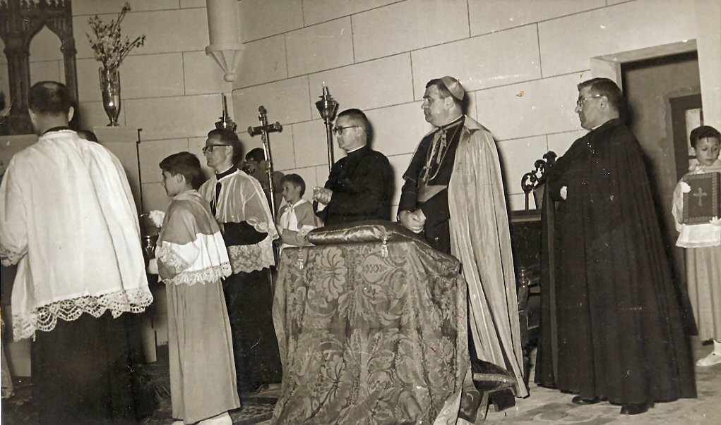 Ourense 1954. D. Emilio Corrales, D. Angel Temiño obispo de Ourense y D. Emilio Alonso.