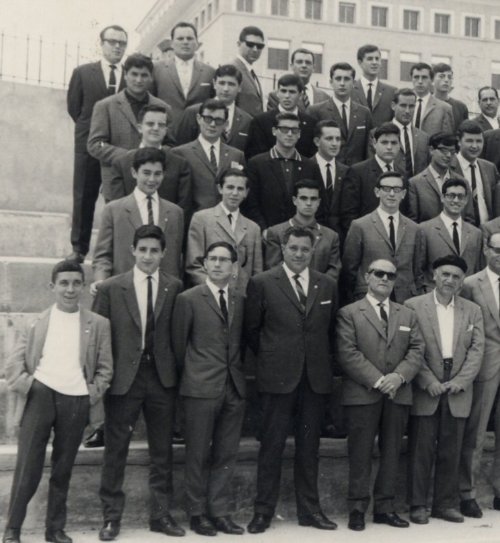 sta fotografía es de 1965 en la fiesta de los Antiguos alumnos y la generación saliente que debe ser la XV. Muchísimas caras conocidas de amigos y antiguos alumnos.