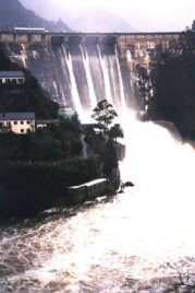Encoro de San Esteban, no río Sil, tamén cheo totalmente, empezou a soltar. Este encoro salvou bastante o principio ( o día 7-12-2000), pero en Xaneiro, ver a fotografía, xa estaba a tope.