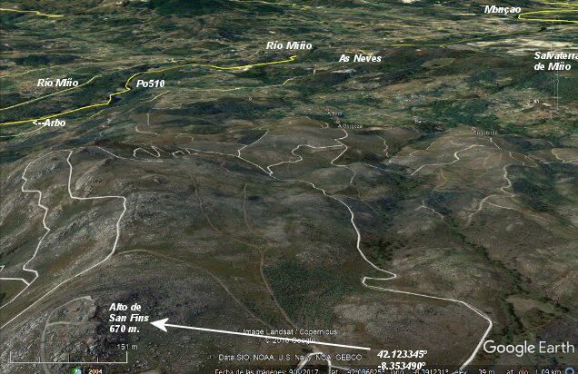 670 m., dende aquí vese o val do Miño dende Filgueira ata Tui.