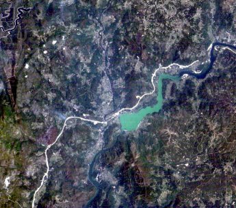 Encoro de Castrelo, de cando en vez aparece eutrofizado. Recibe toda a porquería de Ourense capital e máis... A fotografía é de fai anos.