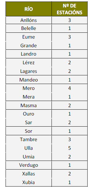 Algúns datos deste informe, falando de algúns ríos, máis de cincuenta da nosa comunidade, son para indignarse xa; vexamos algúns exemplos: