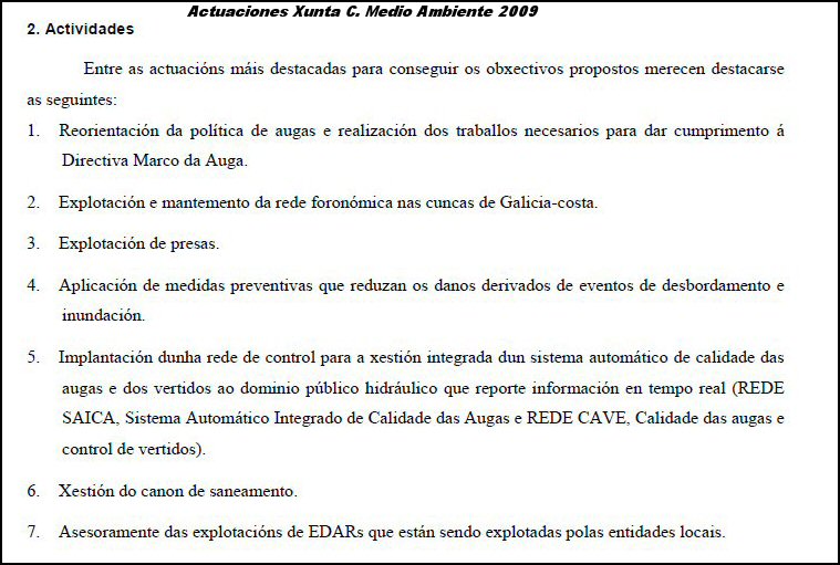 No 2009 volvemos as andadas no tema dos ríos, os ríos e a auga non son cuestións básicas e prioritarias, e tiramos para adiante sin grandes inversións e sin políticas previamente definidas e estudiadas. Como decía fai anos un mandamais, dentro de medio ambiente, "deixar facer e deixar protestar que xa pararán..." .
