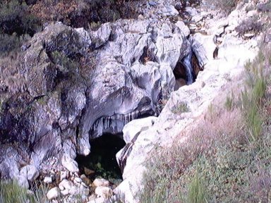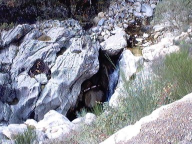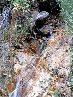 | Ver el caudal ecológico, prácticamente un grifo de agua. Por cierto es de una fuente situada a la derecha de la fotografía. | Por debajo el río no corre. Lógico. No hay río. Desde este punto hay aproximadamente 1 km. a la central. En este kilómetro el río está muerto. |