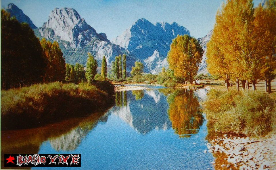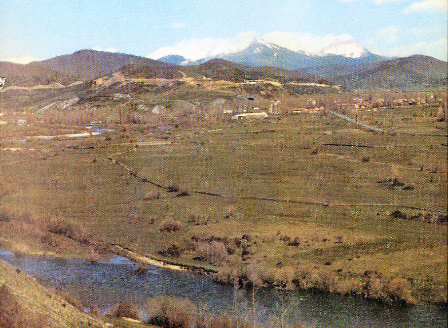 Vega de Riaño. Al fondo el Espiguete, más cerca la unión de los rios Esla y Yuso. Todo esto está hoy bajo el embalse de Riaño. Hay cosas dificiles de entender...