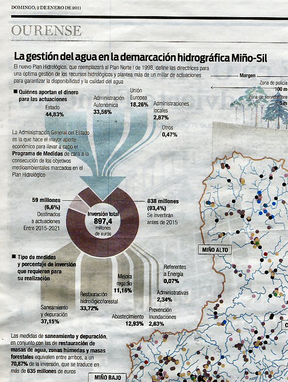 Levo lendo dende fai doce anos (o plan anterior que era unha auténtica marabilla é do 1998) estos saneamentos dos ríos de Ourense, lévase gastado moitos cartos, pero agora parece hai un plan integral para sanear uns ata o 2015, outros ata o 2021 e outros no período 2010-2027. Vamos que seguramente os nosos netos verán cando sexan xa maiores o comenzo duns ríos saneados en Ourense...