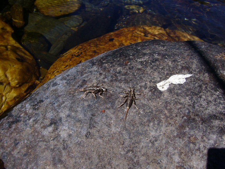 O río inda ten vida, ver o cascarón de gusarapas e un cagada de mirlo acuático, que vín varios...2009.