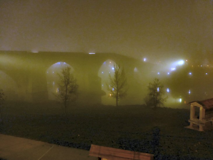 blanca en el muro del puente. Molestan muchísimo los focos exteriores tanto