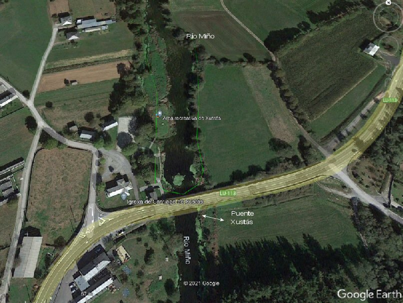 a estrada Lu-P-3003. Esta ponte está entre o Pedregal de Irimia e Meira e o río Miño vai moi cativo. A