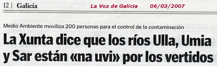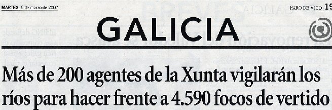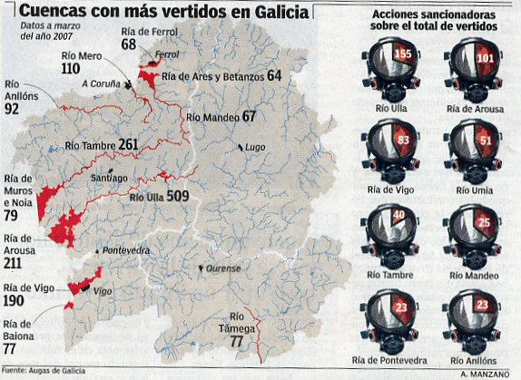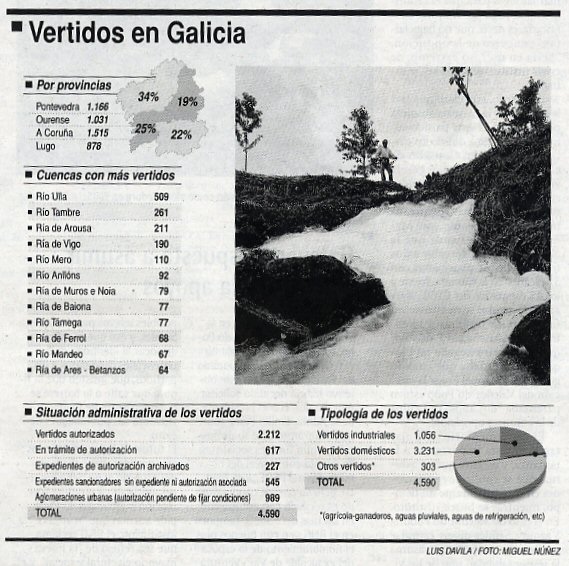 Ante esta sensacional noticia del nuevo equipo de Medio Ambiente de la Xunta de Galicia (marzo del 2007) solo me queda divulgar la noticia y mostrar mi esperanza de que: ¡Por fin se empieza a mirar, de verdad, por los ríos gallegos! Los datos de vertidos son los siguientes: