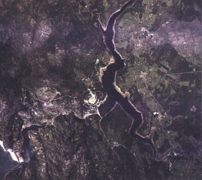 A vista de pájaro la central que produce el desaguisado de la derecha. Es de la empresa Ferroatlántica. Está en Ézaro (La Coruña). Cascada de Ézaro (La Coruña). Fotografía sacada un domingo, a las 12:30, por el autor de la WWW, el resto de la semana está seca. Una vergüenza auténtica.