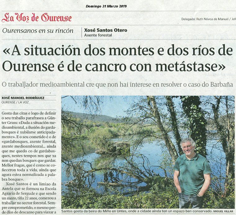 Escrito que aparece na Voz de Galicia do domingo 31 de marzo de 2019. Comparto totalmente a sua opinión, de experto, do que pasa na provincia de Ourense cos Montes e cos ríos. Merece a pena leer o artigo completo.