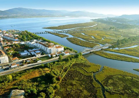 en el río Miño. A la izquierda Caminha. Fotografía aérea de