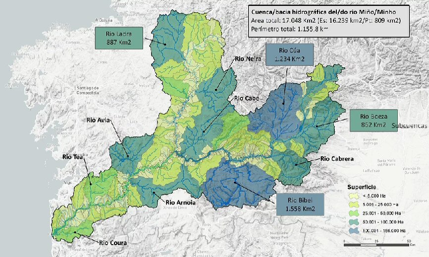 23.276 km. de lineas de auga en la cuenca del río Miño. Casi