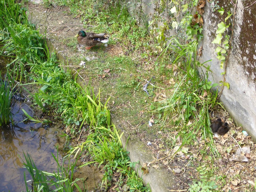 Ver los patos (lavancos) en la margen derecha, criando como pueden...