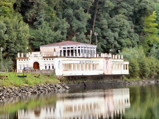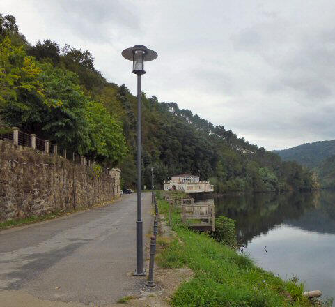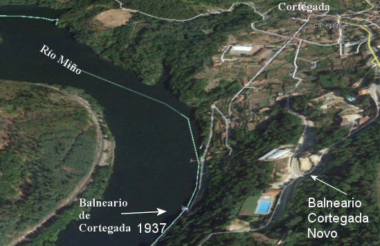 antiguo,Balneario de 1937 e logo máis arriba o novo. Dende Melgaço (Portugal).: Colleremos a