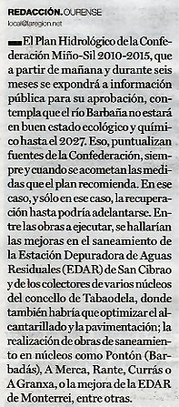 Neste ano 2010 van xa seis verquidos o río Barbaña.
