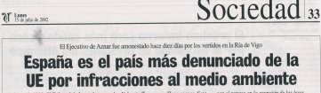 El ejecutivo de Aznar fue amonestado hace díez días por los VERTIDOS EN LA RÍA DE VIGO (Tres playas de Moaña asquerosas.......).