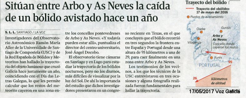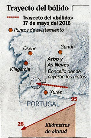 caeu un bólido, de materia cósmica, entre Arbo e Crecente, polo menos así