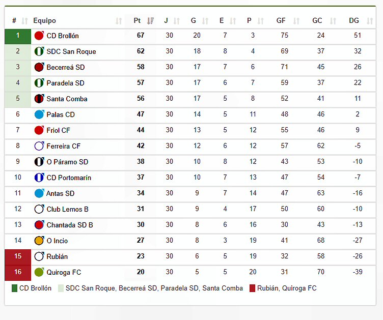 puntos do descenso e veso que recibe moitos goles, casi o máximo da