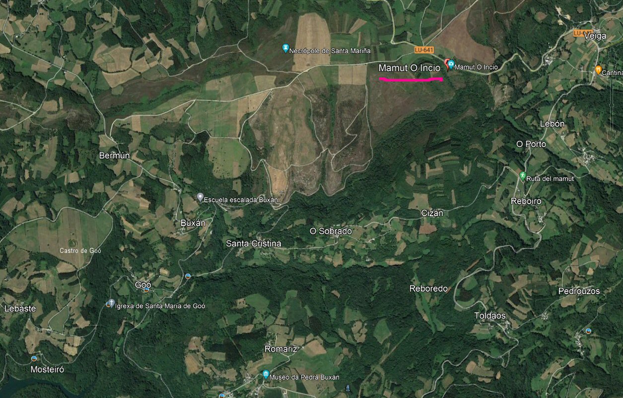 situadas no mapa preto de Buxán na estrada Lu-641.