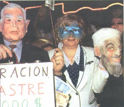 Bush e a súa dona traen preso a Bin Landen ou a "Laden Bin" como dice Carrabouxo no seu chiste de carnaval do 2002. Sin dudalo foi a careta do 2002. Póñolle música Country de Chet Atkins , un pouco de Bluegrass para que non se diga. |