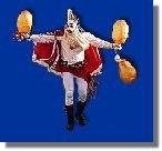 blanco, unas polainas negras y una capa roja con cintas de distintos colores,