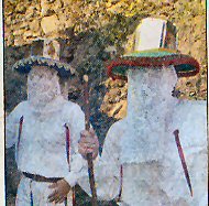 sábana, llevaban caretas hechas en casa de cartón, con campanillas alrededor.