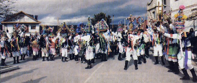 las mázcaras y la comparsa. También se hace en ocasiones la