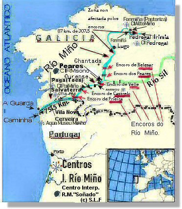 Minho, en el dibujo aparece donde están el gran Aquamuseu del río Minho, en