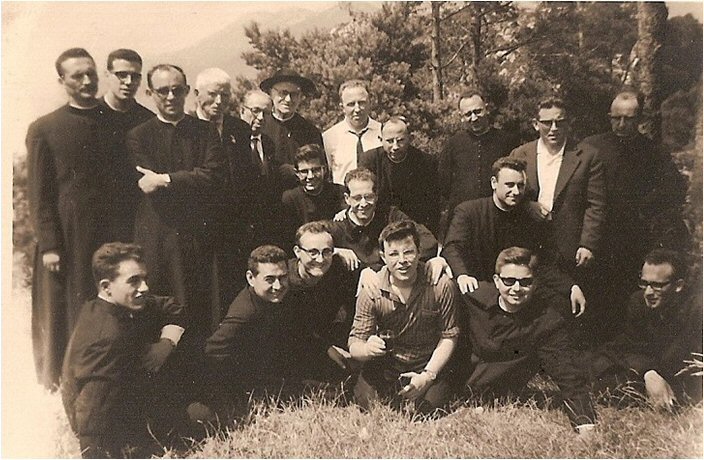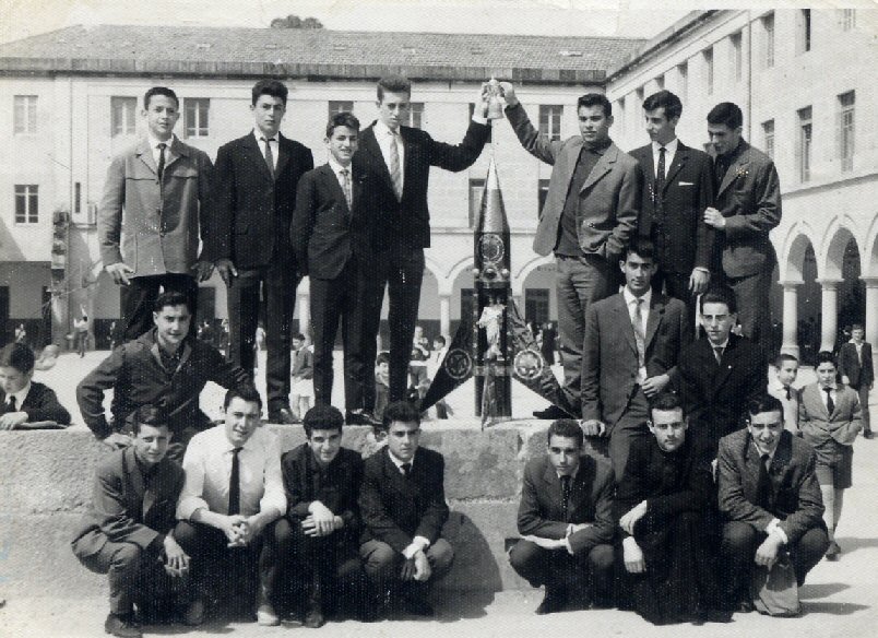 Fotografía de título "Verano 1964". En ella están algunos de nuestros profesores y varias personas muy queridas por el que escribe como Paco Brea (mi manager de futbol), Fausto (idem balomano), Fernando (nuestro profesor) y otros. En la fotografía están los siguientes: En primera fila, de pie, de izquierda a derecha: D. Francisco Brea, D. José manuel, D. Jesús, Sr. Miguel, Sr. Damián, D. José Lorenzo, D. Fausto, D. Jesús Morán, D. Arsenio, D. Benito y D. Emilio Mata. En medio D. Gerardo, D. Amando y D. Miguel. Agachados: D. Victor Manuel, D. Fernando, D. Hipólito, D. Matías, D. Teodomiro y D. Angel García.