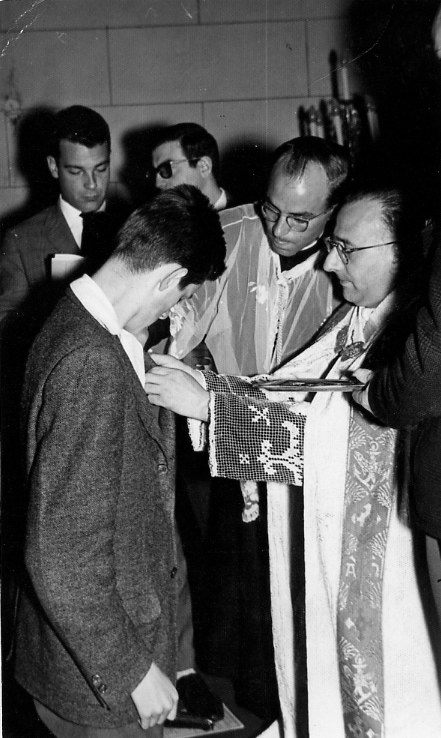 ella figuran los sacerdotes anteriores, Arsenio y Graciano poniendo la insignia de