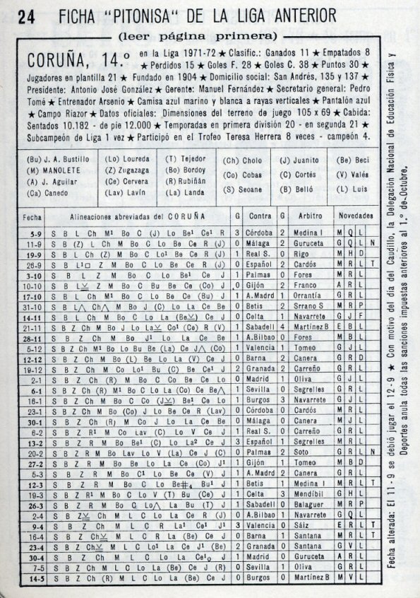 1971-72 Deportivo de La Coruña. 1ª División.