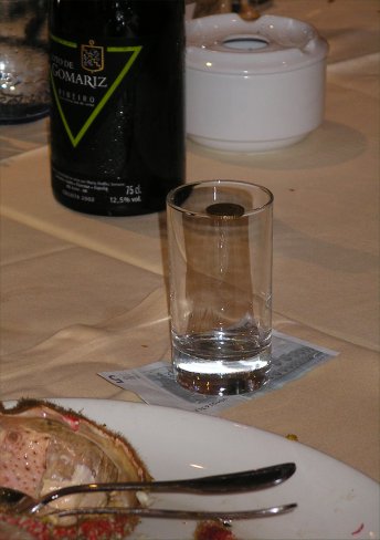 Se trataba se sacar el billete sin que caiga la moneda y sin tocar al vaso... Nos ha sorprendido Tito...