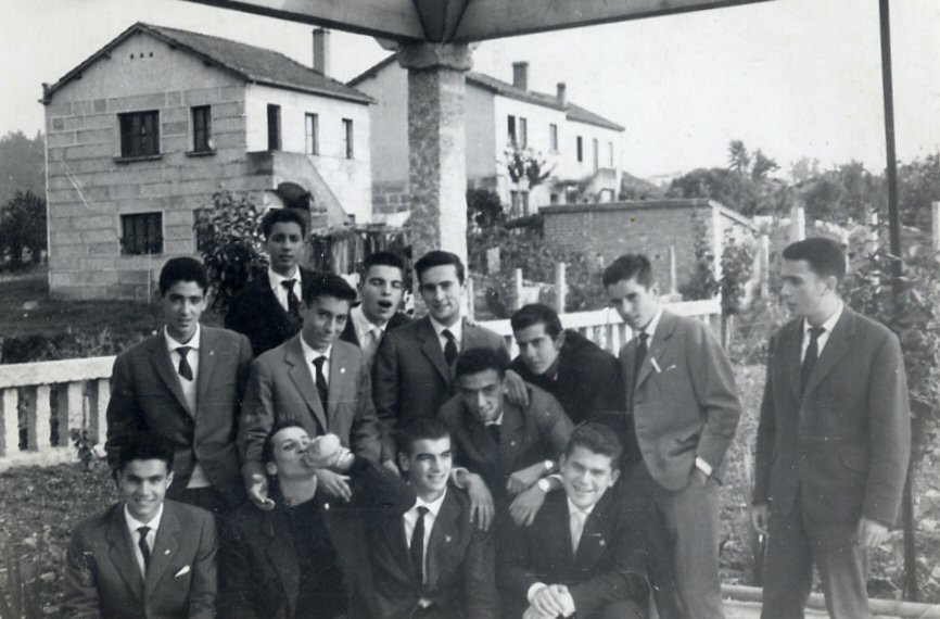 De excursión seguro, mucha gente conocida: de izquierda a derecha abajo: Nacho Riestra, Romasanta, Morén y Toro. Arriba Benigno de la Torre, José Carlos, Jorge Blanco Pumar (Drake), José Luis Pérez Cid, Conde, José Jaime, Manolo Caramés, Fernando Mondelo y Cendón.