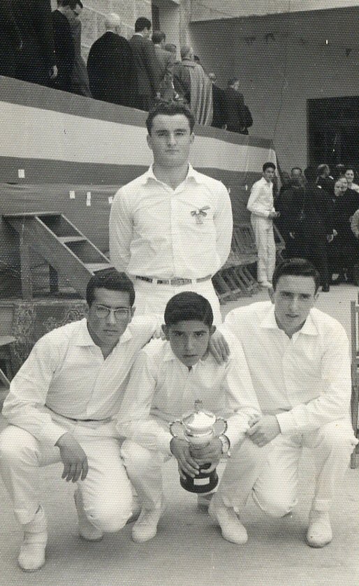 Casares de pe, Gutierrez, Manito y Juan Conde. Barco Valdeoorras abril 1960