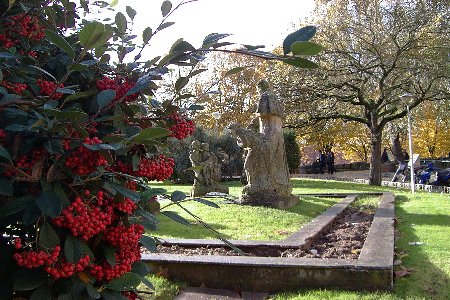 Savio, esculturas situadas a carón do edificio. No noso tempo nonas