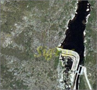 dende o azud ata a casa das turbinas. O treito de río medio seco é duns