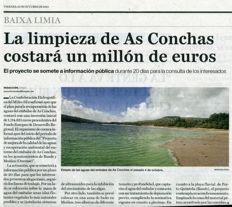 A eutrofización do encoro das Conchas non se resolve tirando estos cartos sin acometer un plan integral de depuración de todos os municipios de verten basura, augas fecais, puríns e elementos de todo tipo o río Limia.