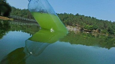 Eutrofización no Encoro de Caldas de Reis. Foto Noé Parga.