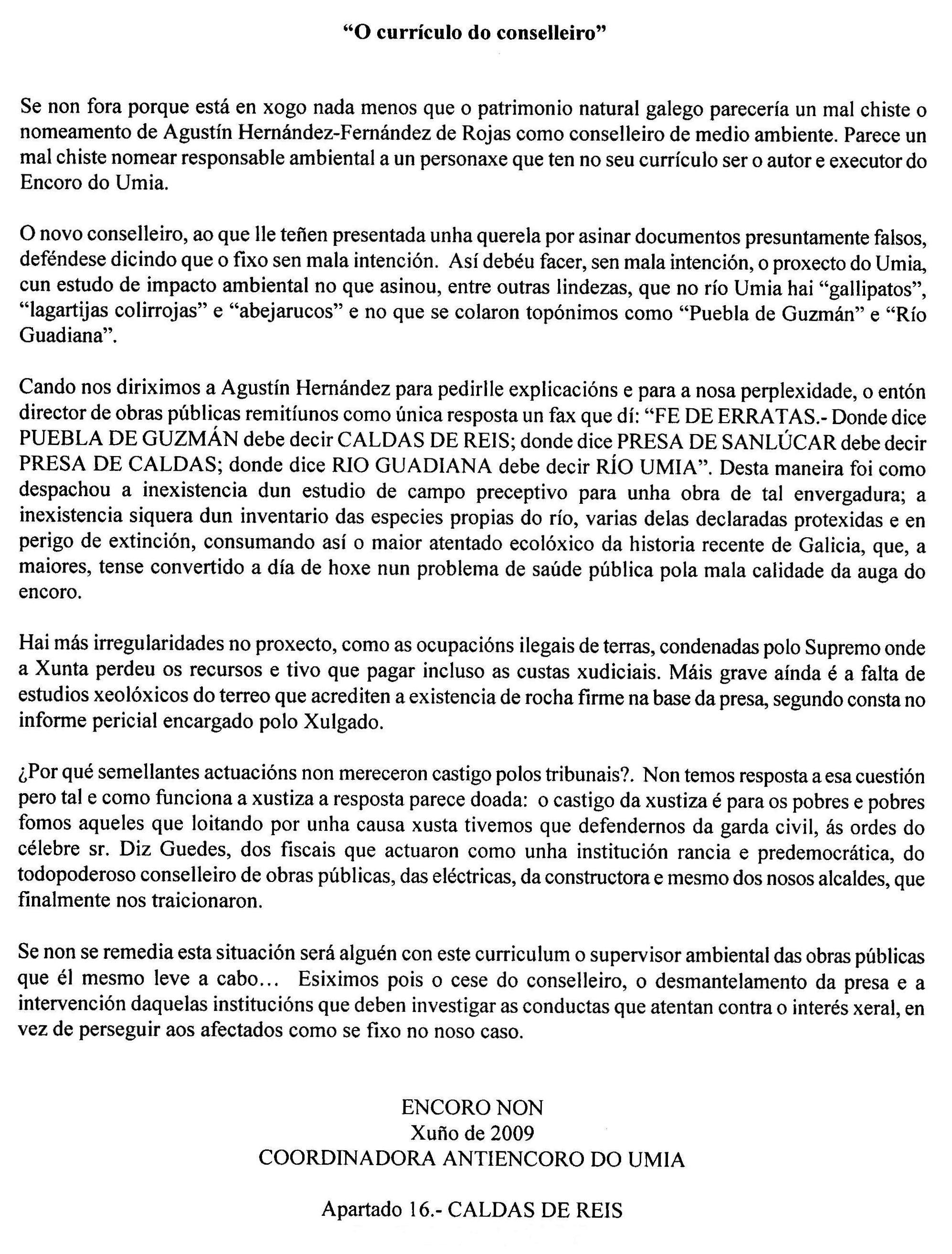 nada profesional e penoso, cando analizou o impacto ambiental do encoro do río Umia no