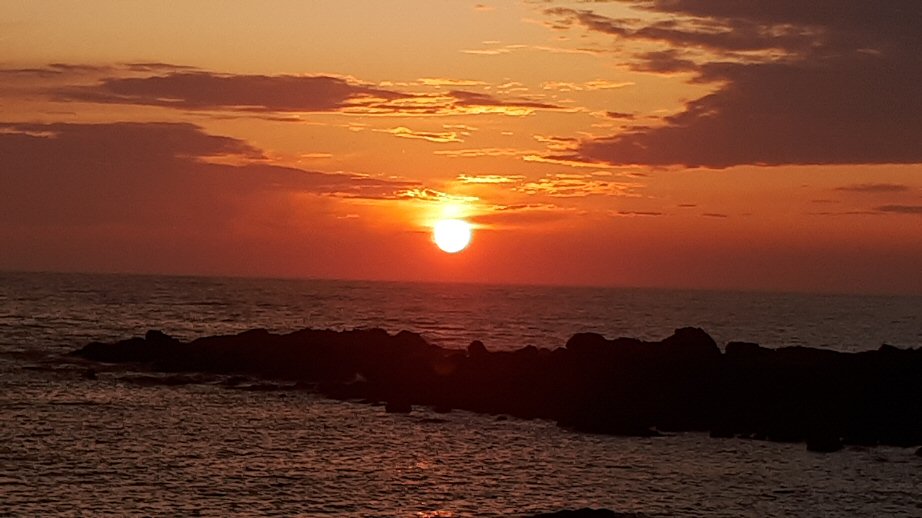 O sol poñéndose na zona. As rocas da zona de Camposancos