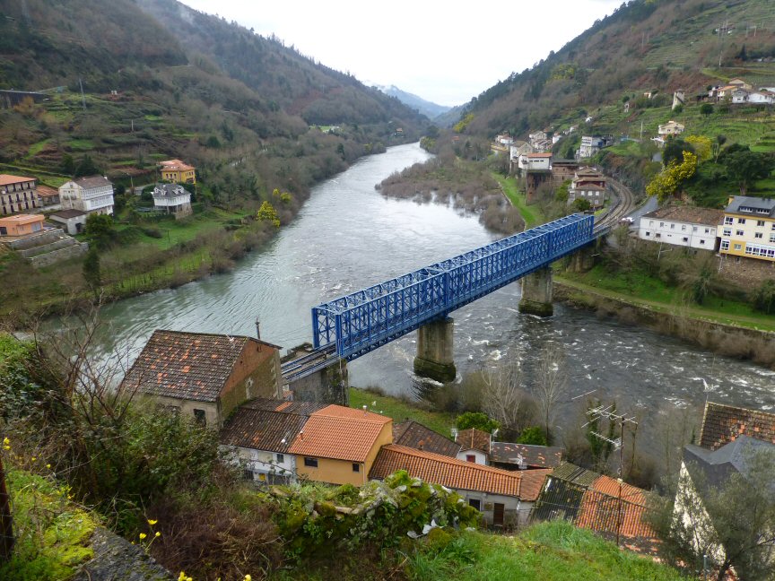ponte. Enfrente o río Sil, este día un pouco apagado xa